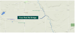 The Erie County Department of Public Works is progressing the Four Rod Road (CR 356) Bridge (BIN 3328050) replacement project. Located within the Town of Marilla, the bridge is approximately 1.5 miles southeast of Marilla Town Hall and carries Four Rod Road over Little Buffalo Creek. Work will include full replacement of the structure.